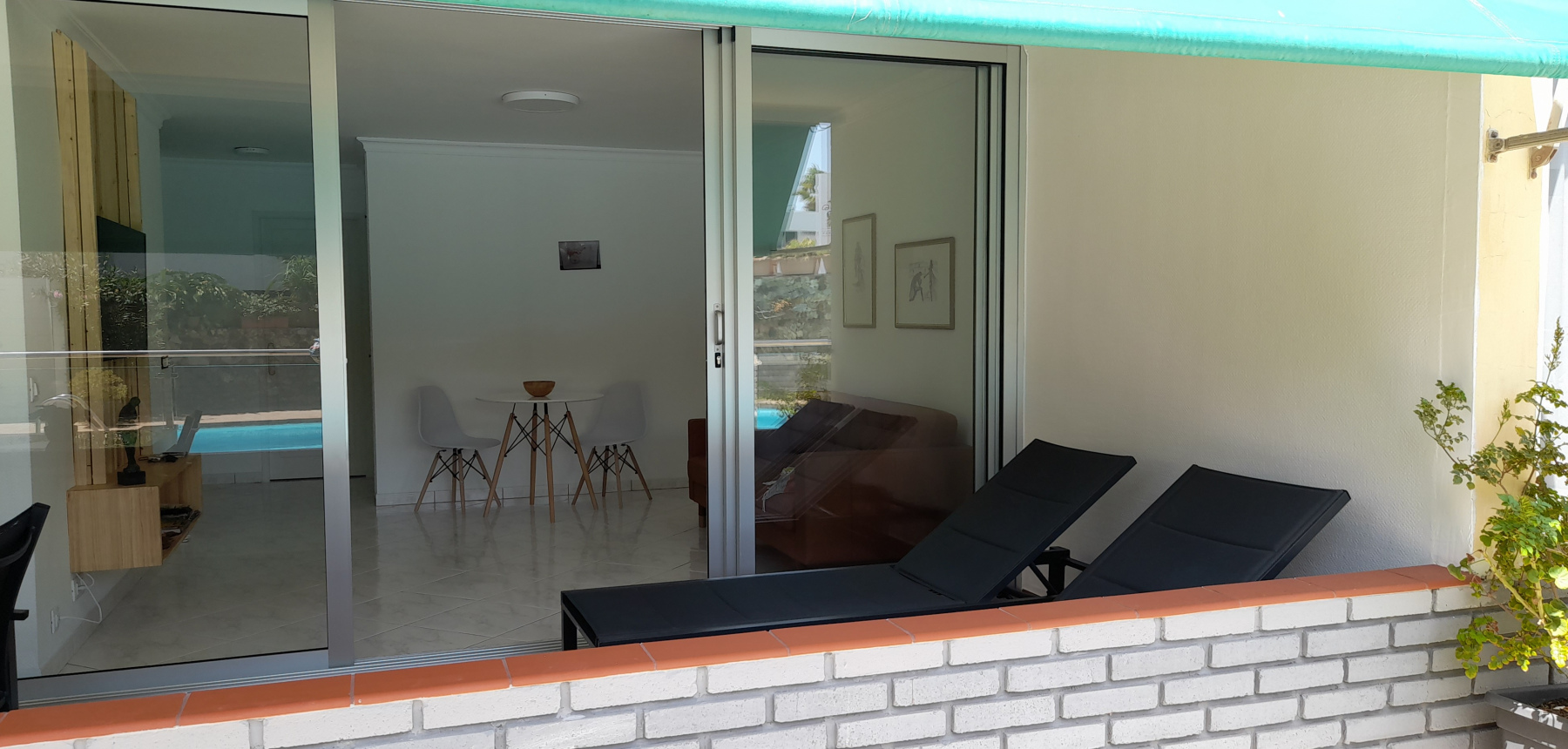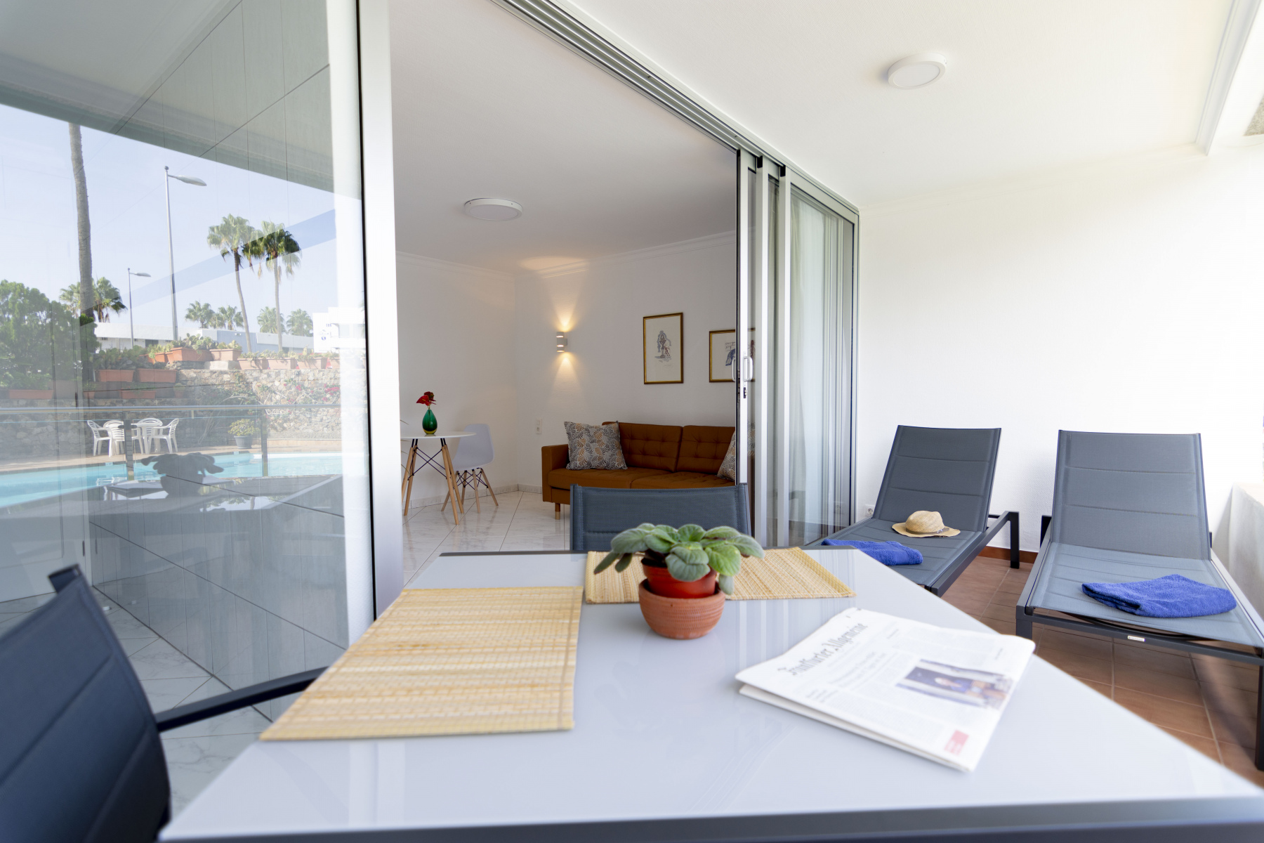 The apartment complex Veracruz consists of 18 units with pool and garden. Our flat is located directly at the pool, here you can relax perfectly with the comfortable sunbeds or enjoy a great breakfast. The flat is 40m² in size and perfectly suited for 2 people.