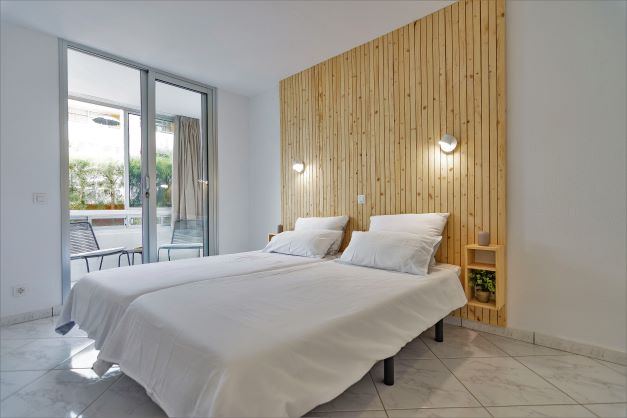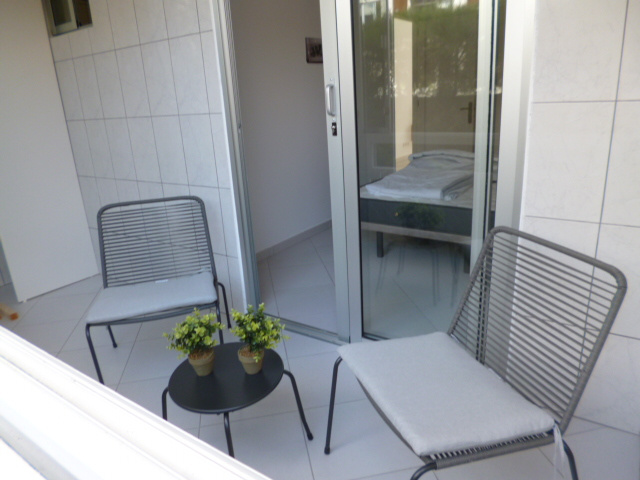 The apartment complex Atlantida consists of 12 units with pool and garden. Our two flats are each 80m² in size, with a very nice large terrace directly by the pool and a small glazed terrace with garden view. A kitchenette, a spacious living and dining area, a modern bathroom and a bedroom with plenty of storage space make these flats perfect for longer stays.